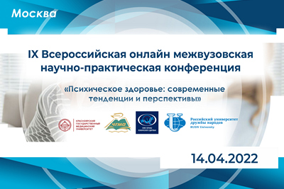 IX ALL-RUSSIAN ONLINE INTERUNIVERSITY SCIENTIFIC AND PRACTICAL CONFERENCE "MENTAL HEALTH: CURRENT TRENDS AND PROSPECTS" Informational letter April 14 at 09.00 (Moscow time) The regular scientific event from the series of the All-Russian interuniversity program...
